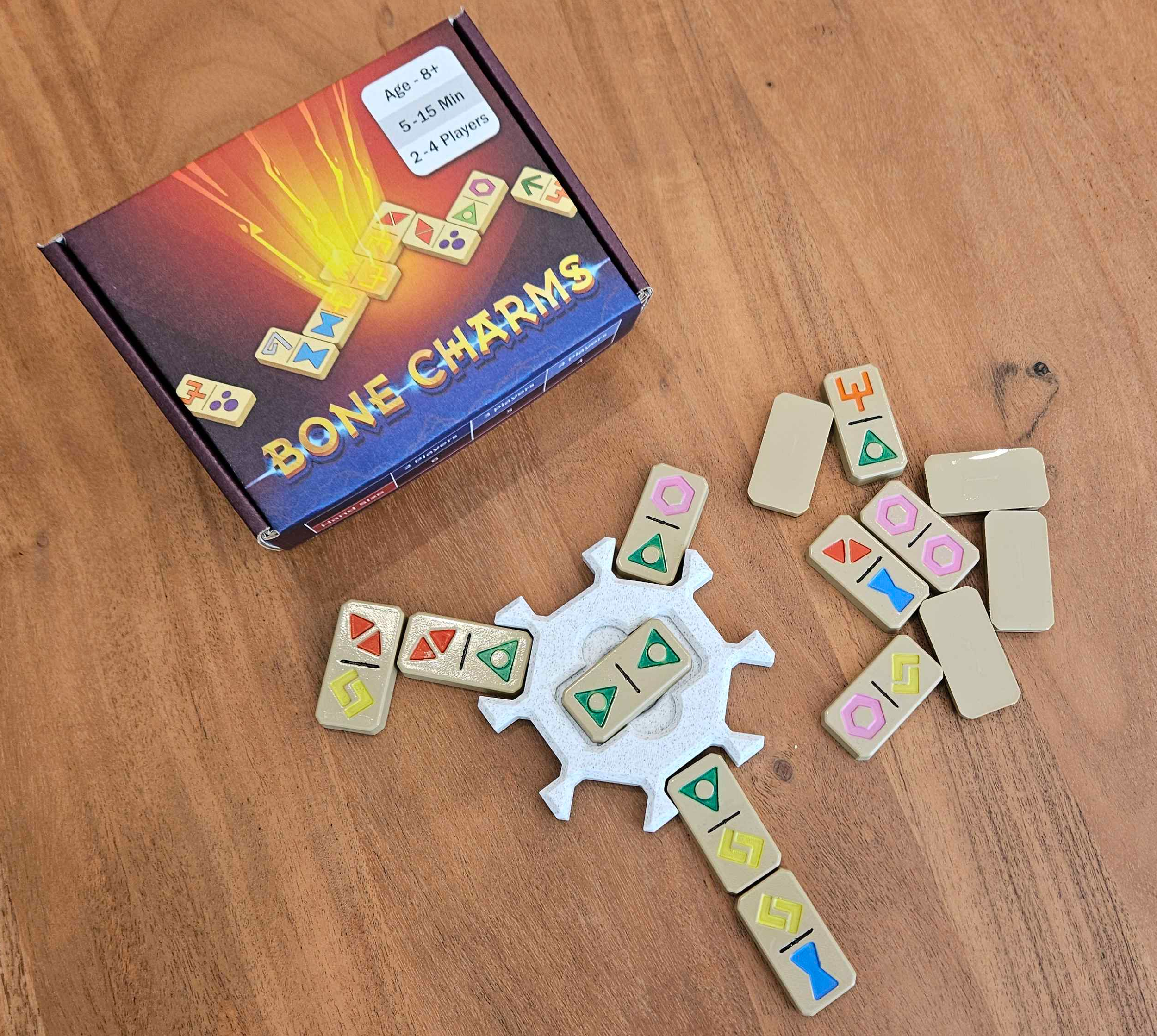 Bonecharms is a new take on Traditional Dominos. Use the Power of the Bonecharms to influence the outcome of the game. Force players to draw, Take extra Turns, Reveal Bonecharms and More! Easy to Learn, Quick to Play, Hard to Master!